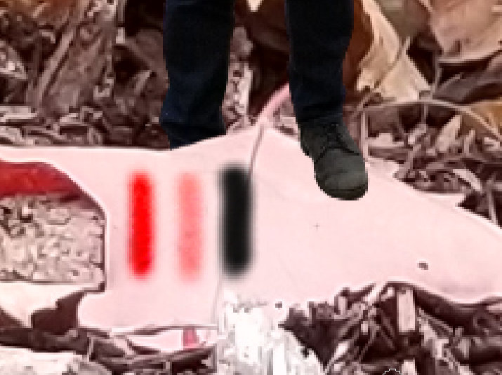 Simply erase the parts of you that are supposed to be behind any object that’s supposed to be in front of you. Be mindful of the hazy edge of the erase tool and use that to your advantage, since the large objects will also be slightly hazy on the edges. Try erasing with gradually smaller cursors, as detailed as you care to get, and remember to zoom in for precise work. Click on your layer again and return Transparency up to 100 and see how you did.