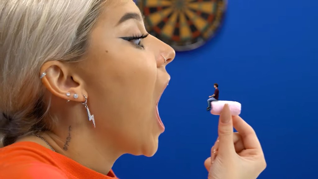 A lightweight Russian production company has produced a series of videos called “Zoom Zoom,” named after the shrinking potion in these videos. They generated hundreds of cute little skits with two enthusiastic actors, polished them with state-of-the-art Adobe tracking effects, and then translated their narration into English, Spanish, and Turkish. They’re all SFW and bright ‘n’ cheerful, though they seemingly toe the line (butt crush, vore, stomp, smoochies, etc.) while depicting dozens of things you can do with a shrunken partner.